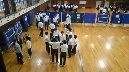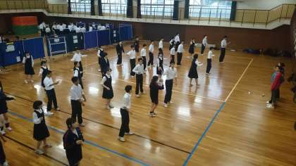 なかなか慣れない動きに戸惑いながらも、生徒たちは一生懸命に練習しています。