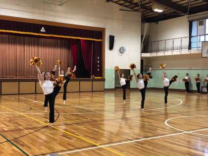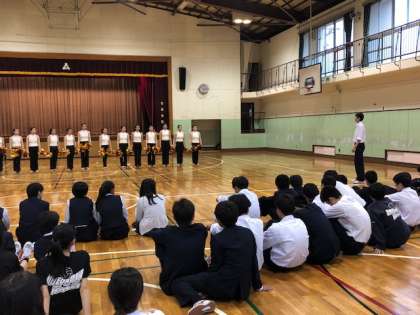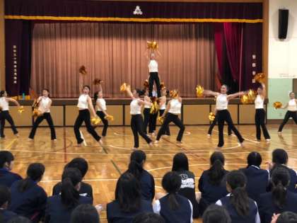 2曲目は、「Here we go」です。アンコールの拍手も飛び出して、温かい雰囲気に包まれる中、最後に応援団の団長からお礼の挨拶がありました。二階堂高校ダンス部の皆さん、ご指導いただき、ありがとうございました。