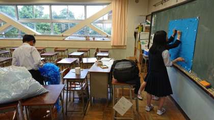 いよいよ体育祭期間に入りました。応援団の活動も仕上げの段階に入りました。ダンスの完成と、合わせて団旗の作成も始まりました。