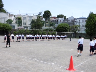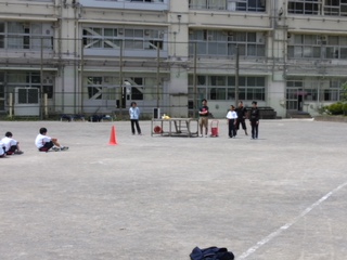 1年生の体育祭学年練習の様子です。ラジオ体操、全員リレー、台風の目、大縄跳びの練習を行いました。
