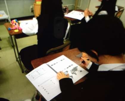 放課後、2年生対象のEnglish Timeがありました。初回は、自己紹介と初対面の相手のことを引き出すために、色々な視点から疑問文を考えました。レッスンはテキストを使いながら進められ、ペアを組んでインタビューをしたり、自分についてのクイズを考えたりと、活動も充実していました!