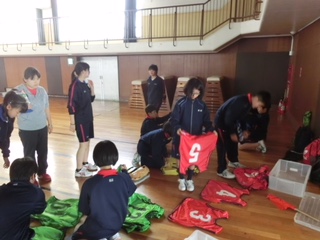 体育祭の係会1回目が行われました。写真は用具係(美化委員) の活動の様子です。当日の分担の確認とゼッケンを番号順にする作業を行いました。3年生が1年生に教えてくれました。