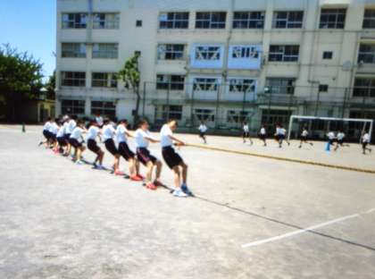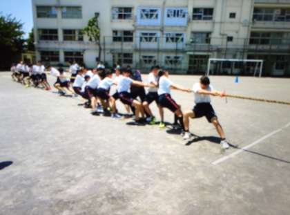 ラジオ体操や100mの走順の確認、全員リレーの練習後、初めて学年種目『綱引き』の練習をしました。