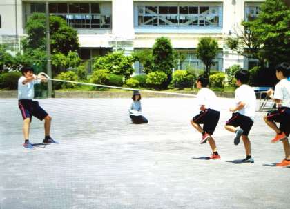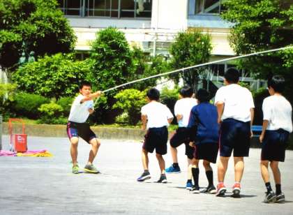 みんなと息を合わせて跳ぶのも大変ですが、回し手もみんな踏ん張って全身で回しています!肩や腰の疲れにも負けず、クラスのために頑張っていました!