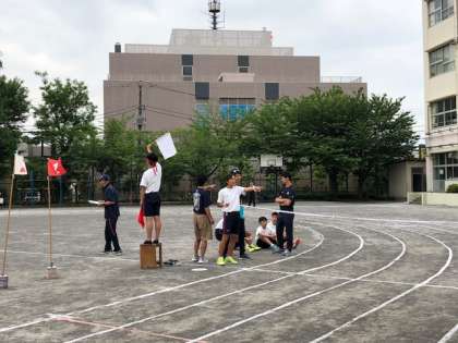 体育祭予行練習の目的は、かかり生徒の動きの確認もあります。係生徒、頑張っています。