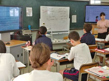 英語による授業も、生徒たちは自然のことととして授業が進んでいます。