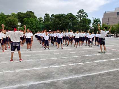 最後は校庭中に響きわたる校歌で締めくくりました。