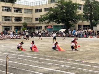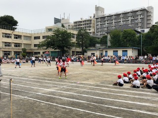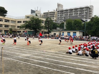 ねづやま夢の学び舎代田小学校の運動会です。梅中生もボランティアで参加しています。エールの交換をしています。