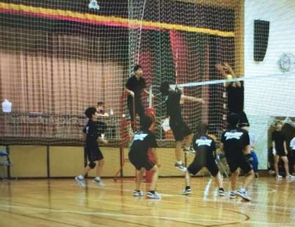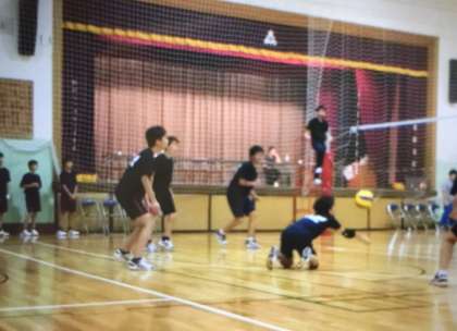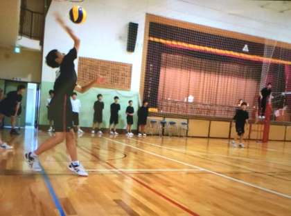 バレーボール部は夏季大会に向けて、実践を積んでいます。今日は午後から梅丘中で練習試合を行いました。男子は3校で試合を進めました。