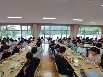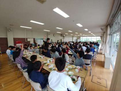 朝食です。朝から元気です。オリエンテーリングのためのパワーをためています。