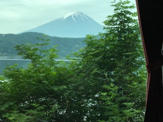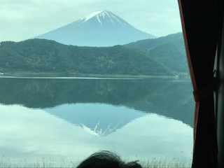 なんとバスから逆さ富士が見えました!