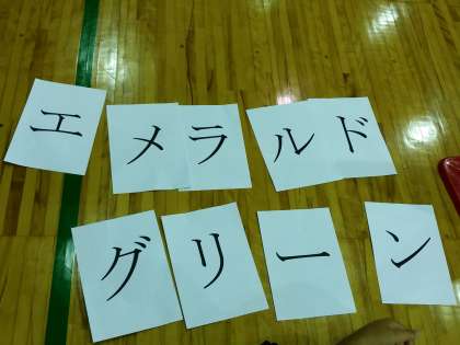 レク大会です。ただ風船やボールを運ぶだけでなく、文字合わせもあります。