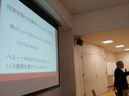 区内の中学校の数学の先生方が集まり、お茶の水女子大学准教授 加々美勝久先生のご講演を拝聴しました。