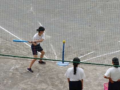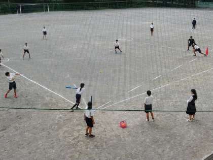 2年生女子の保健体育の授業では、ベースボール型球技(ティーボール)を行っていました。