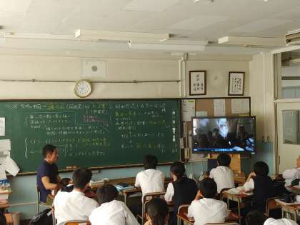 基本的な内容を学習した後に、当時の状況をリアルに再現した動画を見て、学習した内容をさらに深めていました。