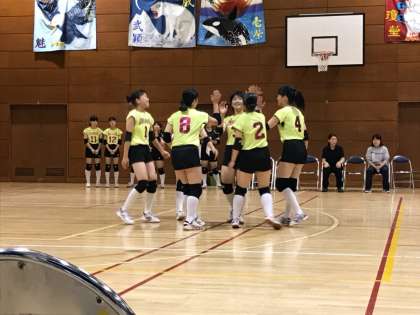 太子堂中にて世田谷区バレーボール大会が行われています。烏山中を相手に、第1セット、25対10で勝利しました。