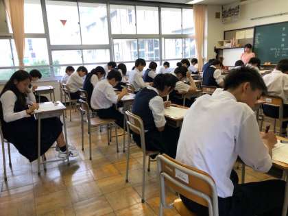 定期考査1日目、2時間目の国語のテストが始まりました。定期考査初チャレンジの1年生も、2.3年生も、真剣にテストに臨んでいます。