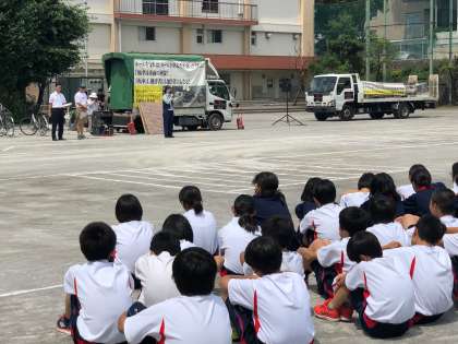 交通安全教室が始まりました。校長先生のお話に引き続き、北沢警察交通安全課の方から、自転車事故の現状についてお話がありました。