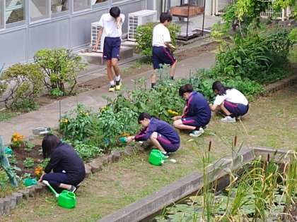 その後、園芸部がつくった梅ジュースを先生方に振る舞っていました。