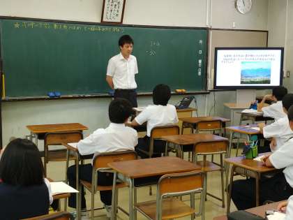 本日、本校の3年次の数学の先生が1年生で研究授業を行いました。