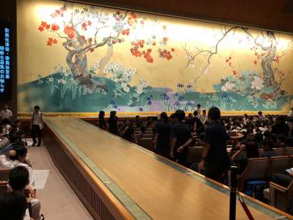 30分くらい待ってやっと中に入れました。これから鑑賞教室が始まります。最初に「歌舞伎の見方」についての説明があり、休憩をはさんで