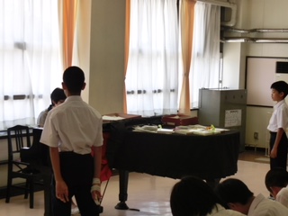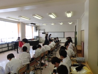 歌のテストを行っていました。しっかり聞いて、採点もがんばっていました。