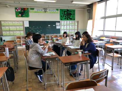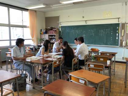 分科会が始まりました。国語部会、算数・数学部会、社会科部会の様子です。国語部会では、アイスブレイクとして語彙力を高めるカードゲームをみんなで行うところから始めています。各分科会では、思考力・表現力を育成するための具体的な方策を話し合っています。