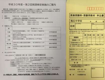 本日、7/19(木) に第2回英語検定のお知らせを配布しました。