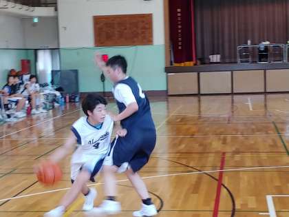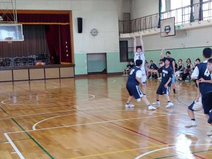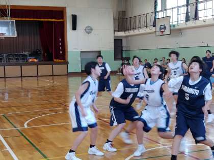 女子バスケットボール部は、秋田県のチームが来校し、練習試合をしています。