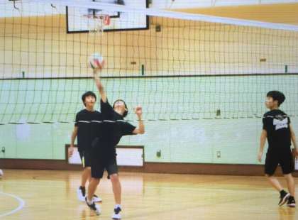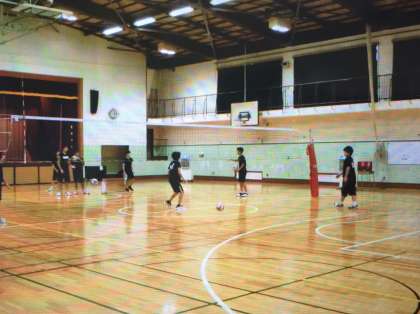 体育館では男子バレー部が練習しています。体育館は熱気にあふれていました!