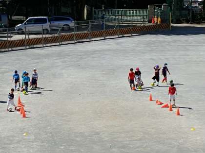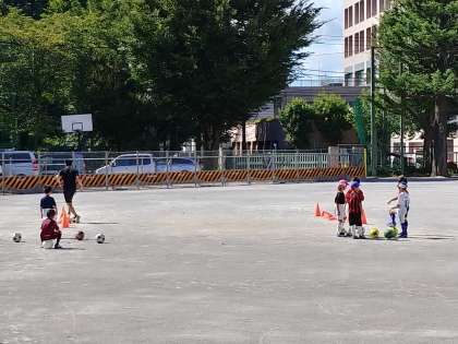 午前中、校庭では地元の少年サッカーチームが練習をしています。