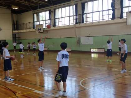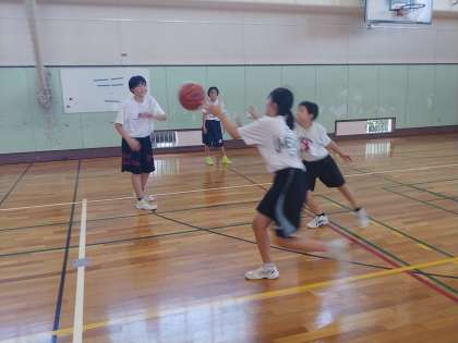 女子バスケットボール部はフリースローとディフェンスのポジションどりの練習をしていました。
