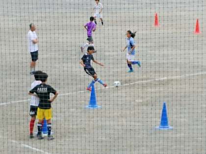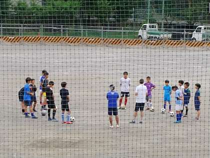 午前中、校庭ではサッカー部が練習をしています。