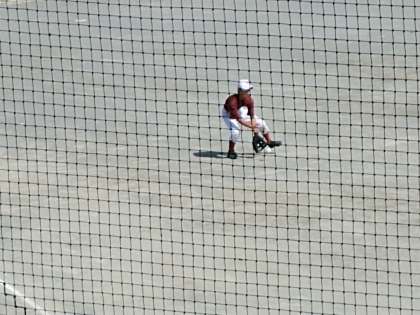 一つ一つの動きを確認しながら、守備練習を頑張っています。