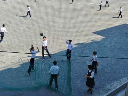 昨日から授業や給食が始まり、昨日も昼休みがありましたが、あいにくの天候でした。