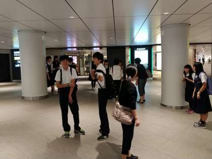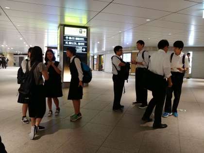 東京駅地下の団体待ち合わせ所です。続々と生徒が集まってきました。