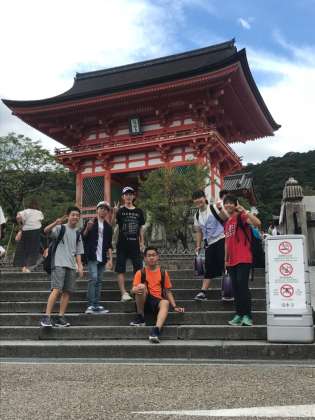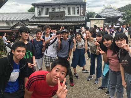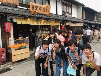 この時間帯は清水寺を訪れる生徒が多い時間帯。一緒に写真撮影。もうお昼を過ぎましたが、まだまだみんな元気で楽しそうです!