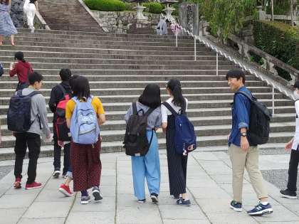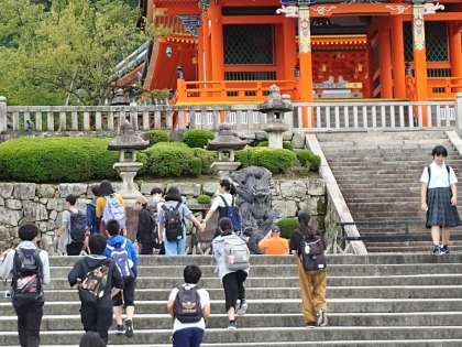 生徒たちと出会うことができました。これから清水寺を見学します。