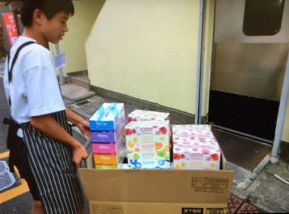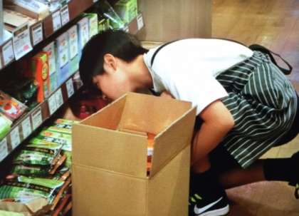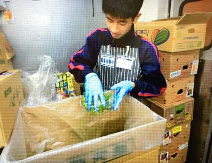 スーパーでの体験の様子です。青果、食品、サービスの各部門に分かれて体験をしていました。