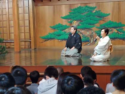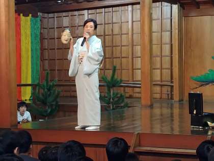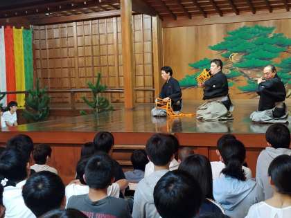能を行う上で大切な小道具のお話や祝言「高砂」をみんなで声を出して謡いました。