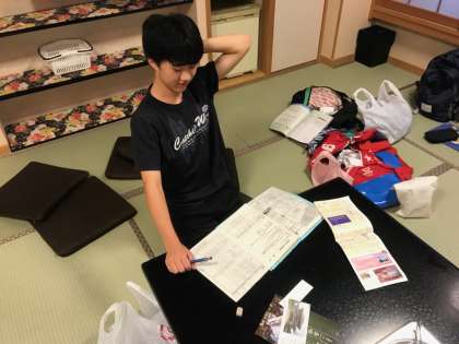 順番が前後しますが、宿に戻り、入浴と同時進行で、しおりの記入を自主的に進められています。