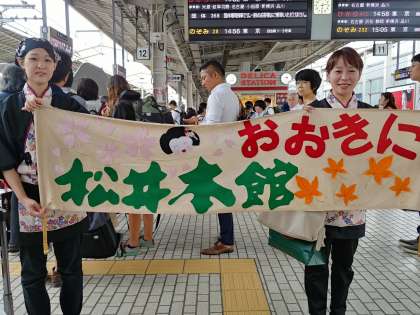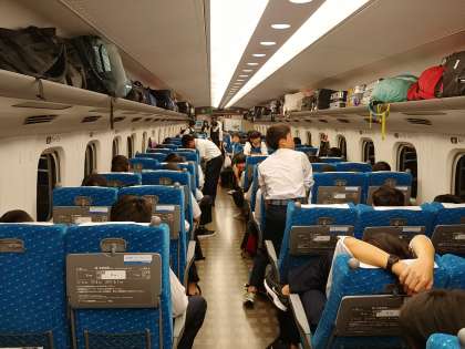 新幹線に乗車しました。宿の方々が駅まで見送りに来てくださいました。14時39分京都を出発しました。