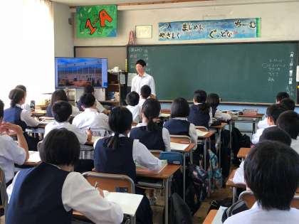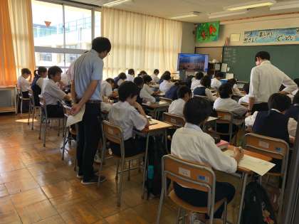 1年A組で社会科の授業研究をしています。アメリカの移民問題について学習しています。