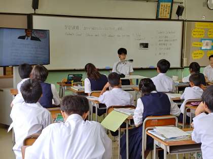 生徒一人ひとりが自分の紹介したい人を英語で紹介していました。