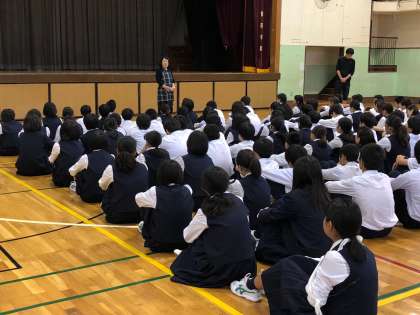 新しく後期学級委員が決まったことを受けて、1年生は学年集会を行いました。学年の仲間の前で、各クラス学級委員がそれぞれの決意表明を述べました。その後、学年の先生方からお話がありました。「素直さを大切に」「自分たちで自分たちの学年集団を良い方向へもっていこう」さあこれからどんな1学年集団を創り上げていくのか、楽しみです。