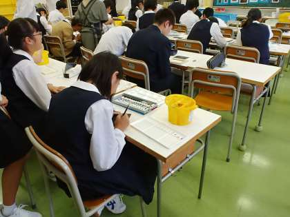 2年生の美術の授業では、スクラッチの制作に取り組んでいました。