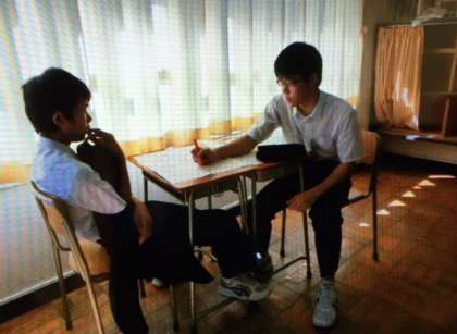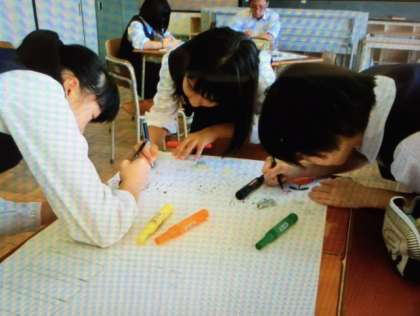 2学年では、9月末から総合的な学習の時間を使って、職場体験学習のまとめをしています。事業所ごとに分かれて、体験したことや体験先の方へのインタビューから学んだことなどを振り返り、ポスターにまとめています。