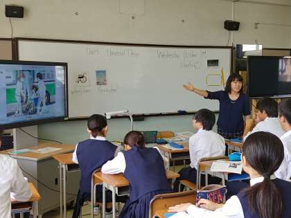 デジタル教科書や実物投影機、ホワイトボードを活用し、わかりやすく本文を解説していました。