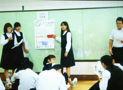 今日の5時間目に、職場体験の事後学習として、体育館でポスターセッションをしました。6グループの代表が発表しました。聞き手も積極的に質問することで、いい時間になりました。