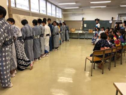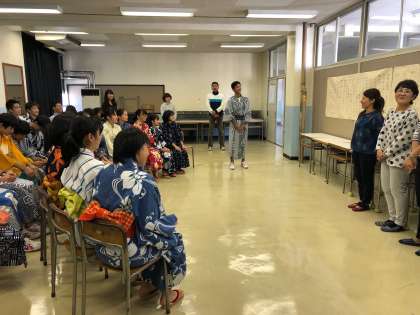 いよいよD組、最後のクラスです。生徒たちは、実際に浴衣を自分で着てみて、本当にたくさんのことを学ばせていただきました。朝から4時間連続で授業をしていただいた講師の皆さま、ありがとうございました。